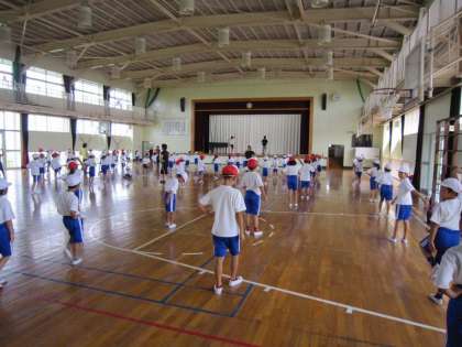 ★体育館で低学年の表現運動の練習が始まりました。「ようかい体操第1」です。楽しい動きがありそうで、期待大ですね。みんな頑張って練習に臨んでいましたよ。