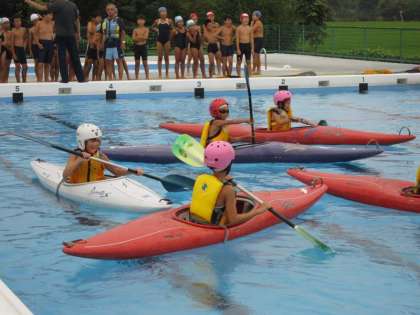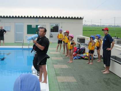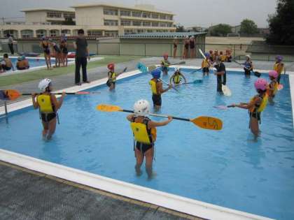 ★毎年恒例のカヌー体験。 60人近い子ども達が参加してくれました。 カヌーも12艇とたくさん持ち込んでいただき、5班編制のグループごとに交代で乗りました。 はじめはバランスをとるのに怖々としていましたが、慣れればスイスイとオールを上手に動かして操縦できるように。 どの子達もとても楽しそうでしたね。 さて今回も八木さんや根岸さん、内山さん、滝沢さん、南野さんのご協力でイベントが実現できました。大変ありがたいことです。 日置先生、陽田先生、横堀先生、辻先生もお手伝いに加わりました。