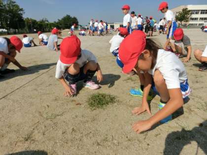 「運動会」が日一日と近づいてきています。指導に当たる先生方は、台風16号の成り行きや進路を横目に、残された練習日程の調整に苦慮しています。児童たちは、一週間でまた伸びてきた雑草の生命力に感心しつつ、慣れた手つきで第2回目のクリーン作戦をやってくれました。「運動会」の準備も日一日と整ってきています。