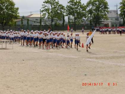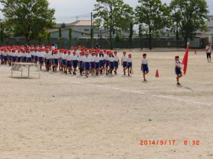 第2回目の運動会入場行進の練習です。今年の入場曲は、サザンオールスターズの『ピースとハイライト』、「ピース」は「平和」、「ハイライト」は「もっと日の当たる場所」という意味を込めて命名したそうです。心穏やかに、胸を張って入場できるように、がんばっています。