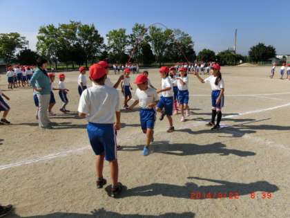 台風16号の動きが心配になってきましたが、児童たちは予定通りに運動会の練習をしています。今日は縦割り種目の長縄跳びの練習をしました。紅白それぞれの班の合計点が運動会の得点になるということで、一層熱が入ってきました。今日の空は雲1つない晴天です。