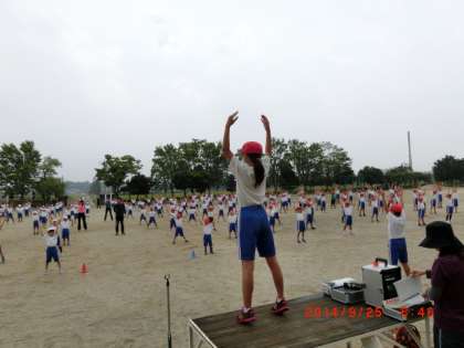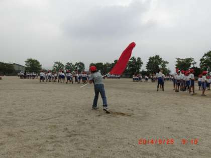 中学校の体育祭が延期になるなど、天候が心配されましたが、夏休み中の親子作業による校庭整備の御陰もあり、朝から運動会の通し練習をすることができました。今日は校庭の放送機器も使い、本部テントも立てられて、演目の最後の確認をすることができます。
