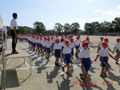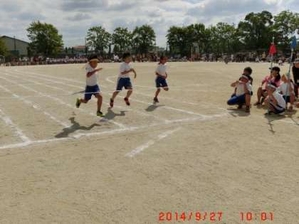 紅白対抗となって2回目の運動会です。紅白の応援にも様々な工夫が見られるようになりました。児童たちも日頃の練習の成果を保護者や地域の方に見てもらおうと、一生懸命に競技しています。