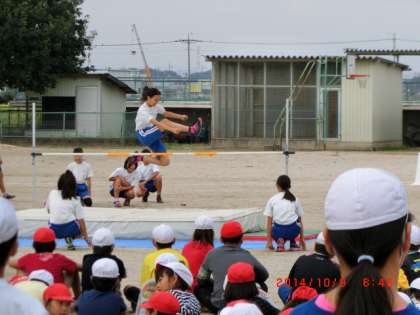 10月17日(金)に伊勢崎の陸上競技場で行われる「郡陸上記録会」に出場する選手の紹介を行いました。紹介された選手は、児童たちの前で、自分が出場する種目を披露します。気恥ずかしさと緊張で、練習の成果を発揮できない選手もいましたが、みんな堂々とした表情と態度で記録に挑んでいました。大会当日では更に、自己記録が更新されるでしょう。