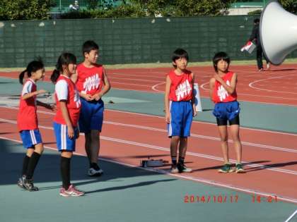 あいにくの強風に自己記録更新を阻まれた児童もいましたが、秋風をも味方につけ、競技場は児童たちの熱気に包まれました。県大会出場への標準記録を突破した児童の数は、近年にない大人数となりました。