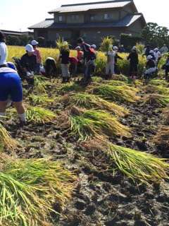 今年から、農業体験クラブの方にお世話になり、米作りをな体験させて頂いています。今日は、上野村の子供達と一緒に稲刈りをしています。