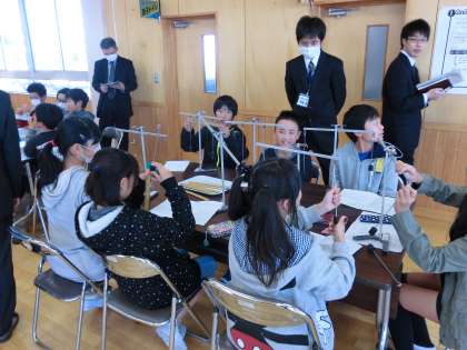 玉村小学校に、町内の小中学校の先生方が集い、授業交流会が行われました。