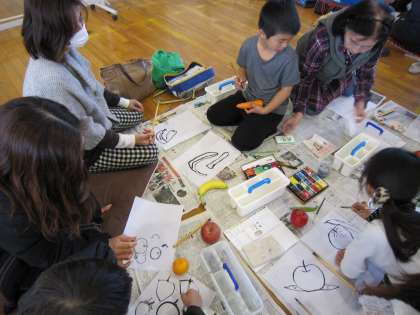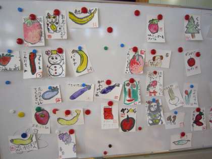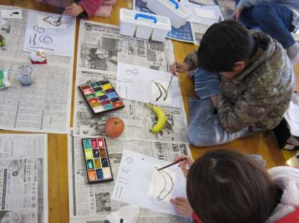 ◆毎年恒例になっています絵手紙サークル「一歩の会」の皆さんを講師に迎えて、3年生の親子行事「絵手紙づくり」を行いました。はじめに代表の筑井さんから「絵手紙ってこういうもの」のお話をしていただき、早速グループごとに会の皆さんが絵手紙の手法を丁寧に伝授していただきながら不慣れな直描きに挑戦。意外に子ども達も保護者の皆さんも上手にダイナミックな線を描いていて、彩色するととてもいい出来映えになりました。最後に言葉を添えて絵手紙ができあがり。できた絵手紙は福島県の相馬市へ送られます。きっと被災された皆さんの励みになってくれると思います。寒い体育館でしたが楽しく素晴らしい体験ができたと思います。一歩の会の皆さん、ご参会の保護者の皆さん、どうもありがとうございました。
