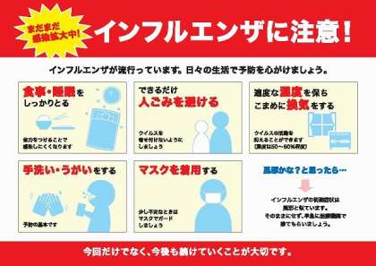 1月13日(火) インフルエンザの流行に、ご注意ください。