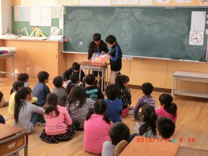 今朝は、5・6年生の図書委員も「でんでん虫の会」の方に交じり、低学年で読み聞かせ活動をおこないました。「声の大きさ」や「抑揚による表現力」など、まだまだボランティアの方々には遠く及びませんでしたが、児童たちはしっかりと聞いてくれました。
