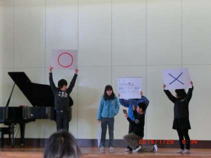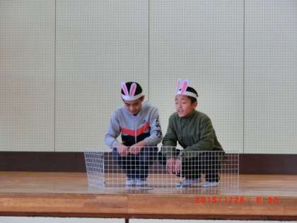 飼育委員から、日常の活動の中で児童たちに気づいて欲しいことを劇にして訴えてくれました。