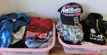 サイズを確認し、学級を回覧しましたが、自分の持ち物をおぼえていない児童も多く、落とし物入れのカゴはいっぱいになっています。