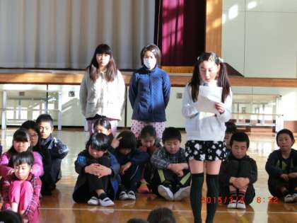 上陽小学校の児童たちのために1年間献身的に活動してくれた方々に感謝の気持ちを伝える「拍手を送る会」を体育館で行いました。