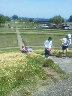 お弁当タイムの後は、二子山古墳で腹ごなしです!気持ち良さそうに遊んでいます!