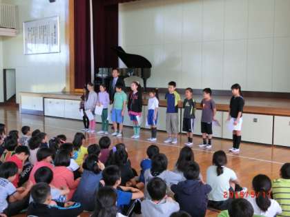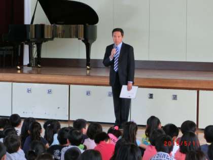 全校児童を体育館に集めて「5月の朝礼」を行いました。