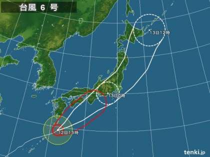 台風6号が関東に接近してきています。今後の動きに少し注意しておいてください。