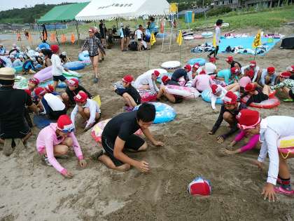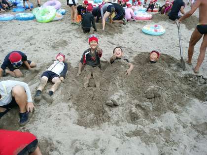 砂浜に上がってひと休み。砂遊びが大好きです!
