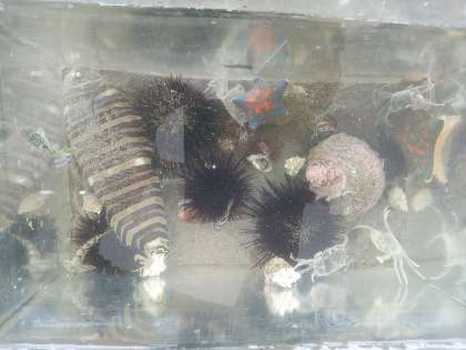 うに、ヤドカリ、ヒトデ、カニ、シタビラメ、フグなど、海の生き物もたくさんとれました。