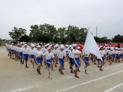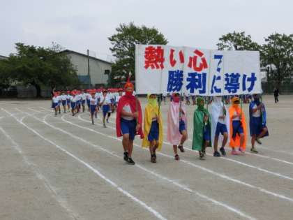 上陽小ルールレンジャーにも参加してもらって、運動会の入場と退場の練習ができました。