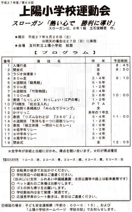 運動会のプログラムができました。児童を通してご家庭にも配付します。