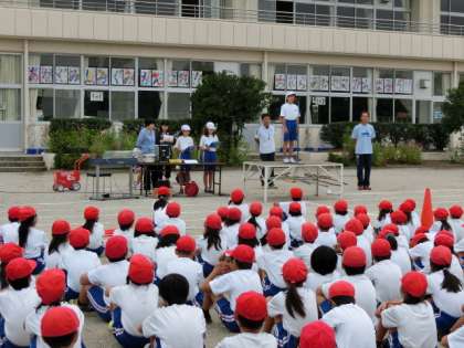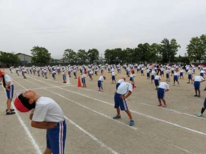 台風21号の動きが気になるところですが、今週末の26日(土曜日)の実施に向けて諸準備を進めています。今日は開会式からの流れを中心に練習しました。放送の聞こえ方や校庭の距離感など体育館とはずいぶん違いますが、練習を通して調整していきました。児童たちの持つ順応力はたいしたものです。