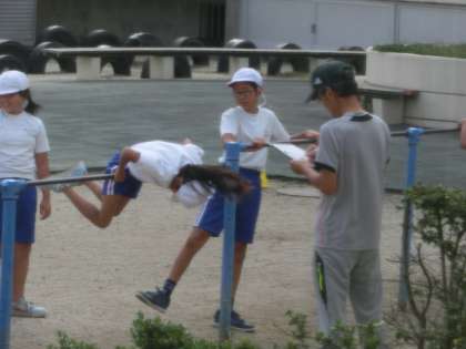 「今日は、テストプリン2枚やったよ」「鉄棒のテストで始めて前回りができたぜ」「テストに向けて自主学習(CU学習)をしてきたよ」「あ〜、とにかく疲れた」などと児童玄関でしゃべる声が聞こえます。児童も先生方も大変そうです。