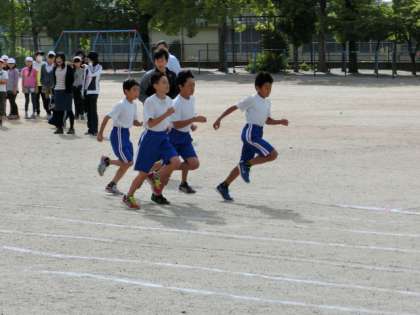 1人1人の紹介と実際に走ったり、投げたり、跳んだりする姿を全校児童に見てもらいました。今日、声援を受けて、自己ベストの記録を出す児童がいるなど、力が入ってきました。