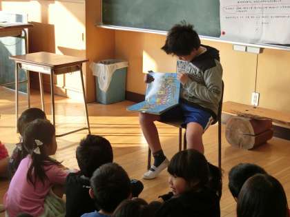 図書委員が低学年児童たちに読み聞かせを行ってくれました。