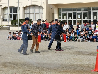 今日は、玉村消防署から職員の方にお越しいただき、避難訓練の様子を見ていただきました。今年度も4回目の訓練ですが、火災時の煙を吸い込まないよう「ハンカチ等で口鼻を押さえ、低い姿勢で避難すること」「火災はいつどこで起きるか分からないので、家庭でもよく相談しておくこと」などを指導していただきました。