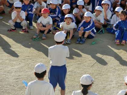 ドラえもんの曲に合わせたリズム跳びには、全員が慣れてきて、2階のベランダから見るとラジオ体操よりも揃って見えます。今日は、運動委員さんの得意な跳び方や大技を見せてもらって、1人1人の目標が1段階レベルアップしました。
