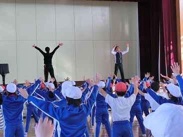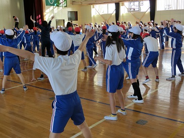 運動集会でリズムダンス(ジャンケン)を行いました。