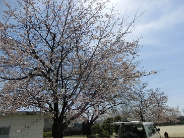 校庭の桜は八分咲きです。