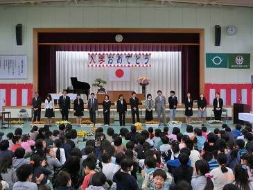 新2年から新6年のクラス編成が発表され、新しい学級が発足しました。『成長が実感できる1年間になるように、それぞれが腕を磨いてほしい。』と校長先生からお話がありました。学級担任も発表され、新体制となった上陽小の平成28年度にご期待ください。