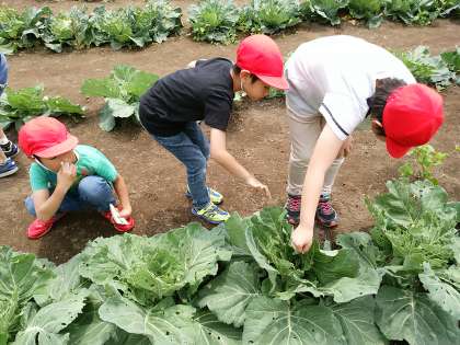 キャベツ畑でチョウチョの幼虫が見つかるかな?