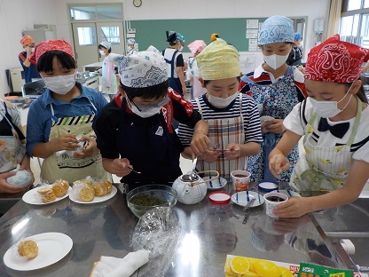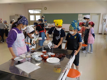 5年生が初めての調理実習に挑戦しました。5月13日(月)に1組、5月21日(火)に2組が行いました。めあては「お茶を入れる手順を考えて、協力して調理しよう」です。どの班も協力して実習を行い、おいしいお茶とクラッカーをいただきました。