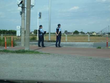 6月3日(月) 現在、登下校時の安全見守り活動を強化しています。いつもお世話になっている地域の方々による旗振りや見守りなどに加えて、学校周辺における警察や役場の方によるパトロールを行っています。写真は6月3日(月)の下校時の様子です。