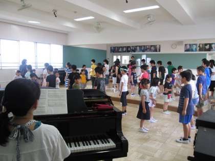 6月5日(水) 音楽の授業で、6年生が1年生に歌声サポートをしました。「ゆかいに歩けば」の歌声(声の出し方)を、6年生が1年生に、優しく、上手にレクチャーしてくれました。
