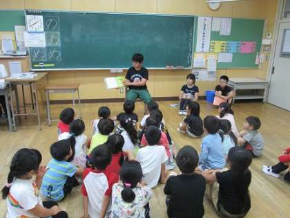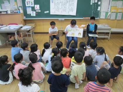 6月7日(金) 図書委員会の5・6年生が、1・2年生の各教室で読み聞かせをしました。児童が互いに読み聞かせをすることで、本とより深くかかわったり相手のことを考えたりするなど、新たな学びがあります。写真は1年1組と1年2組の様子です。