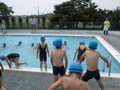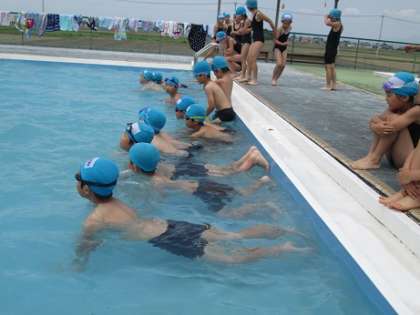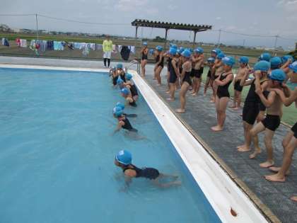 6月19日(水) 2年生の体育の授業の様子です。この日は気温が上がり、ようやく水温も上がってきて水泳ができました。1、2組合同で授業をしています。