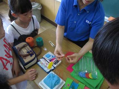 6月24日(月)・25日(火) 5年生の家庭科の授業で「裁縫セット講習会」を行いました。講師の先生をお招きしました。裁ちばさみ、チャコペン、針山、糸切りばさみ、……。裁縫に使ういろいろな道具の名前や扱い方を、丁寧にわかりやすく教えていただきました。