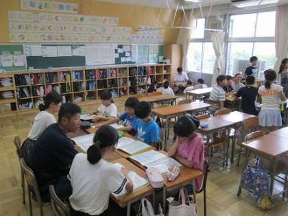 7月18日(木) 5年生の6CUの時間です。はじめに、臨海学校に一緒に行く9人の先生と顔合わせをしました。そのあと係に分かれて、仕事の内容や手順などについて、担当の先生と打ち合わせをしました。明日は終業式です。楽しみにしている臨海学校が近づいてきました。
