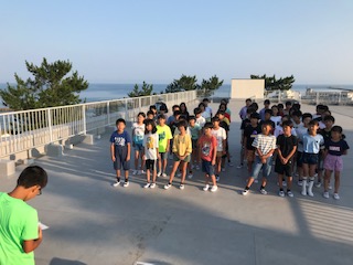 2日目の朝を迎えました。今年から各部屋に冷房設備が入り、みんなぐっすり眠れた様子です。具合の悪い児童はいません。写真は、朝のつどいと朝食の様子です。