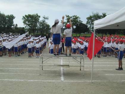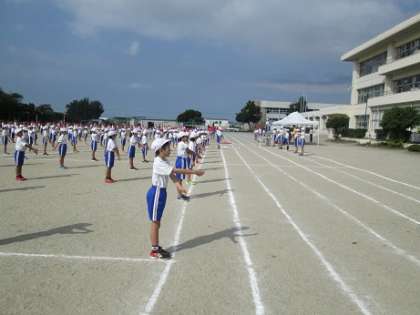 9月26日(木)朝の時間と1時間目に、全校で運動会の練習をしました。歌やラジオ体操、入場・退場などの練習です。代表委員の児童がしっかりと担当の仕事をしてくれました。6年生が立派に全体の動きのお手本になってくれました。