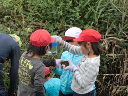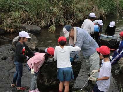 3年生の総合「藤川で魚とり」