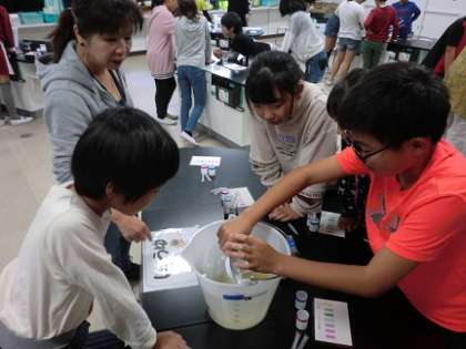 10月24日(木)5年生の総合的な学習の時間では、「環境」について主体的・対話的で深い学習をしています。この日は、県の環境サポートセンターから講師の先生を招いて「家庭から出る水の汚れ」と「発電から地球温暖化を調べよう」の実験を取り入れた授業を行いました。