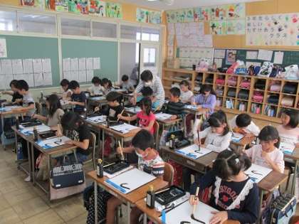 11月1日(金)3年1組は学級活動です。めあては「すごいぞ大豆!大豆はかせになろう」です。栄養教諭の先生にゲストティーチャーをお願いしました。3年2組は国語です。書写の学習で「つり」を練習しました。一生懸命に書いて廊下に掲示しました。