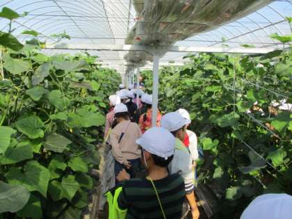 11月6日(水)3年生が社会科の授業できゅうり農家の見学に行ってきました。「生産」の仕事が、地域の人々の生活と密接な関わりをもって行われていることなどを学習します。ご協力をいただいたきゅうり農家さん、大変ありがとうございました。