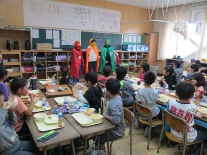 2年生の給食の様子 公開日 2019/11/13 更新日 2019/11/13 学校の様子 11月13日(水)2年生の給食の様子です。この日は、ルールレンジャーがやってきて「給食しっかり食べよう!グリーン!」の呼びかけをしてくれました。