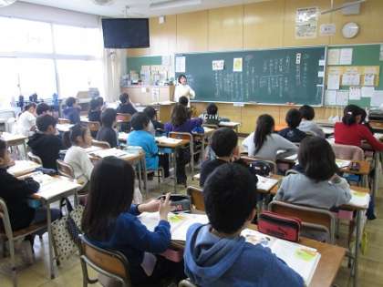 11月26日(火)4年生の授業の様子です。1組は英語活動です。「アルファベットを使って楽しもう」という授業です。タブレットと大型モニタを使って学習しました。2組は道徳です。「千春とわたし」という資料を使って家族と協力することの大切さについて考えました。