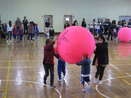 11月28日(木)1年生が「キンボール」(空気を入れた大玉)を使った運動に挑戦しました。町のスポーツ推進員さんを講師にお招きしました。大変に盛り上がりました。楽しい運動をして親子で汗を流しました。スポーツ推進員さん、学級理事の皆さんありがとうございました。